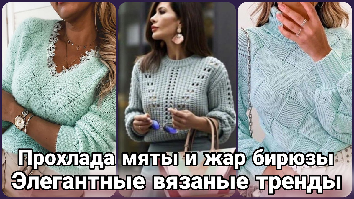 Свитер цвета мяты — это иное настроение. Это изысканная простота. Идеальный вариант — классическая лицевая гладь или мелкая, ажурная «сеточка». Он струится по фигуре, мягко очерчивая линию плеч. Его удел — создавать образы для спокойного воскресного дня, для неспешного разговора за чашкой эспрессо. Наденьте его с белоснежными джинсами и жемчужными серьгами — и вы поймёте, что такое элегантность без усилий.