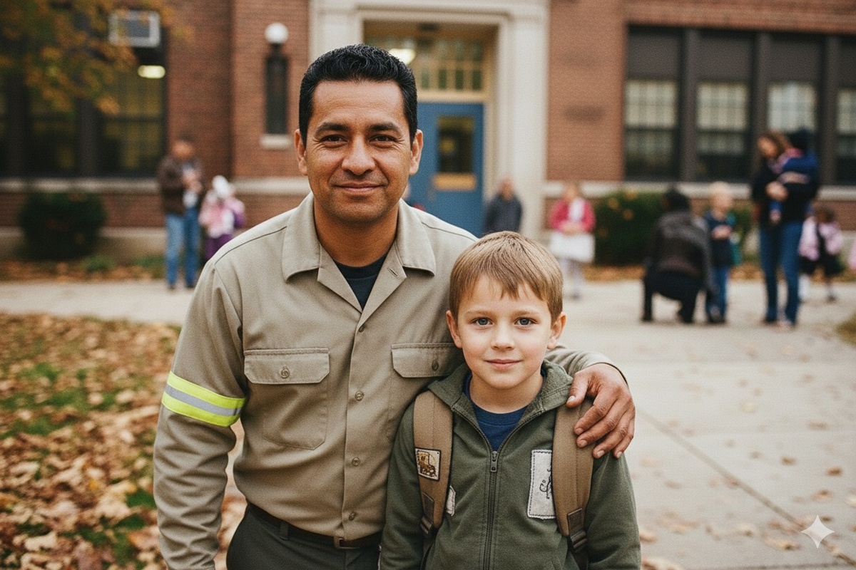 Савелий Петрович, работая дворником, носил старую форменную куртку, замызганные перчатки и вечные сапоги, от которых пахло резиной и дождём. Он приходил к школе так, чтобы не попасть на глаза классу. Прятался за углом, ждал звонка, чтобы никто не увидел, как хромающий дворник забирает своего сына.
