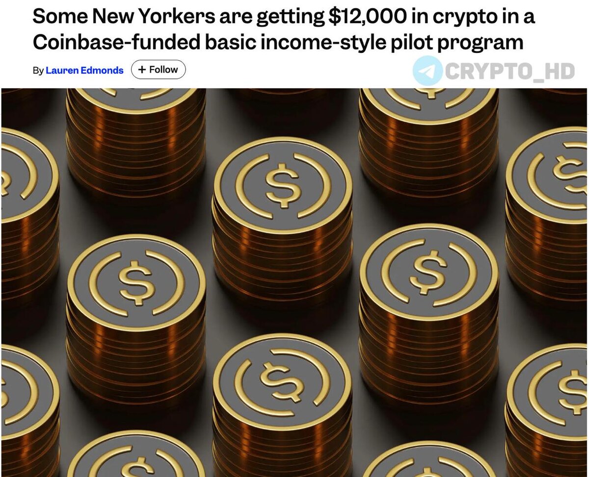 🇺🇸 Жителям Нью-Йорка раздают $12,000 в крипте… Coinbase и благотворительный фонд GiveDirectly проводят эксперимент – 160 жителям из Южного Бронкса и Восточного Гарлема (бедные районы) выплачивают базовый доход в #USDC. Цель – проверить, как люди используют криптовалютные пособия + выяснить, может ли блокчейн стать удобным, быстрым и прозрачным инструментом для будущих соц. программ. Участникам проекта выплачивают: ➠ $800 в месяц в USDC (с сентября). ➠ Единовременно $8000 в ноябре. ➠ Итого за 5 месяцев выходит около $12,000 в криптовалюте. Если эксперимент окажется успешным, то пилот может стать прототипом будущих частных или государственных UBI-программ. Cryptо Headlines