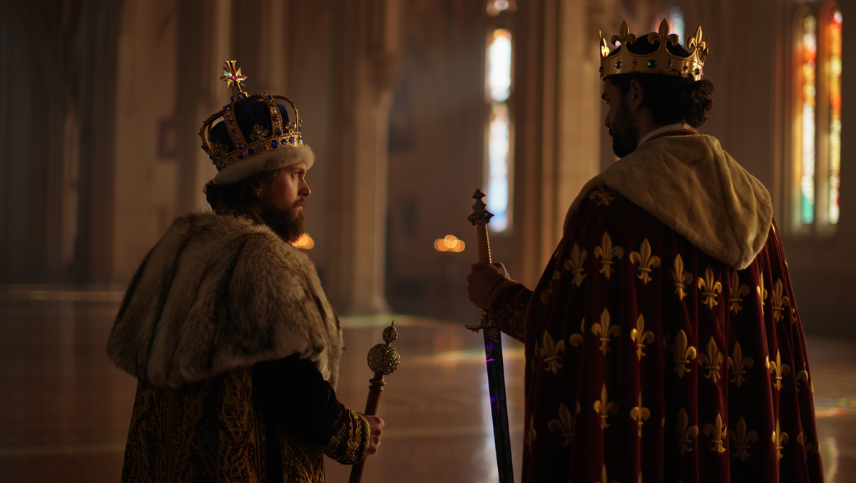 Вообще-то мы привыкли к тому, что в Европе жили короли, а у нас на Руси — цари. Звучит так, будто это два разных мира, которые не имеют между собой ничего общего. Но если копнуть глубже, выясняется, что названия титулов возникли из совершенно разных исторических линий, и обе развивались одновременно. Один пришёл из наследия Карла Великого, другой — из традиции Римской империи. Так что за каждым словом стоит огромная история, запутанная, как переплетение корней старого дерева. Название «король» родилось вовсе не в славянской среде. Оно буквально ведёт нас к одному человеку — Карлу Великому, чья империя к IX веку раскинулась от Пиренеев до Дуная. Его имя настолько вошло в сознание европейцев, что стало почти нарицательным. Западные и южные славяне приняли слово «король» в значении правителя, и так оно вошло в их языки. Примечательно, что только славянские языки используют производную от имени Карла. В других языках картина совсем другая: rex, king, rey, roi — ни намёка на Каролингов. Н