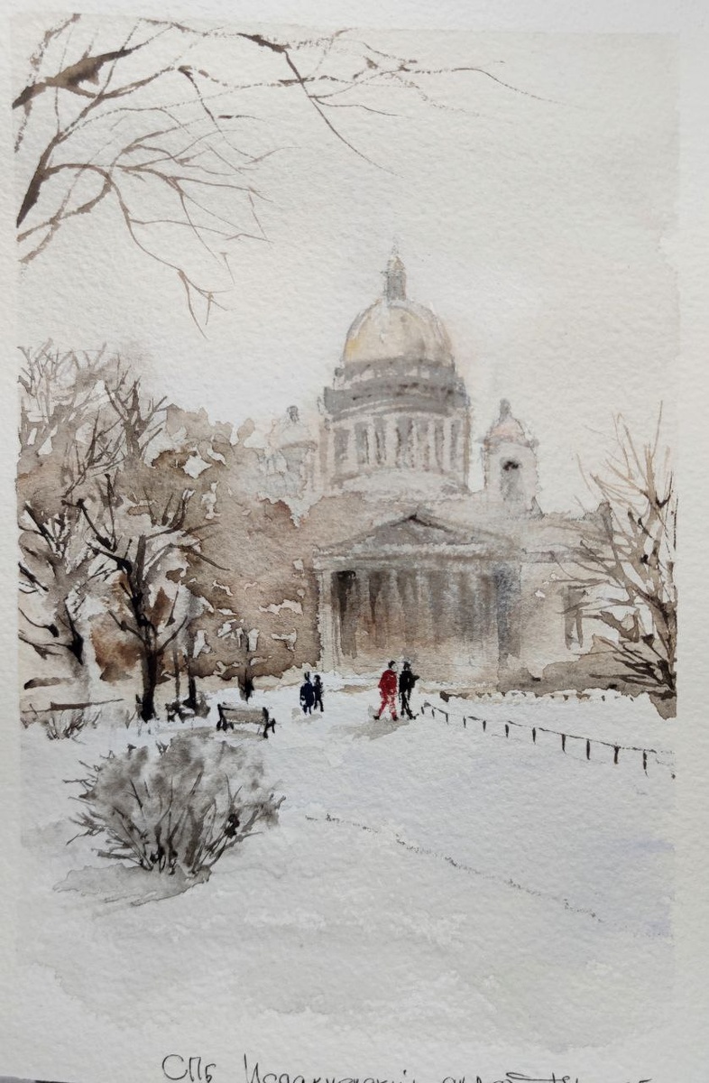 #кисти #краски #акварель #Городок #прогулки #зарисовки Исаакиевский сквер
