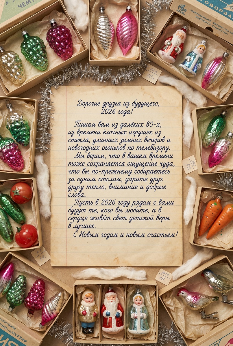 Получился эффект настоящей тетрадной страницы, на которой кто-то из прошлого пишет поздравление жителям 2026 года.