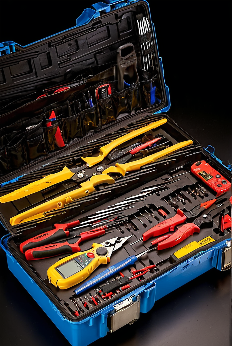 - Инструменты для профессионального электрика: Расширенный набор для работы с электропроводкой, кабелями и распределительной коробкой