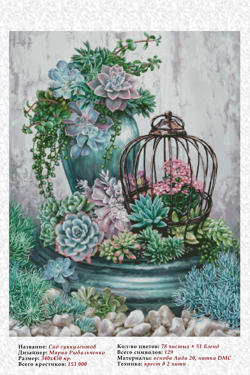 Мне тут захотелось повышивать какой-нибудь процесс так, чтобы вот прям сразу хорошо был виден прогресс. Чтобы прирост на сравнительных фото был очевиден. Вышить за раз этак тыщи 3, устроить себе такой мини-марафончик. В играх у меня таких норм нет. Вернее, можно было бы сыграть в "Большой-Средний-Маленький" с большими нормами, ведь там я решила не устанавливать себе верхнего порога по крестикам. Но мне не захотелось. Я решила провернуть это дело среди тех работ, которые еще вообще не вышивались в этом году. Я добавила их все в рулетку, и мне выпал "Сад суккулентов".