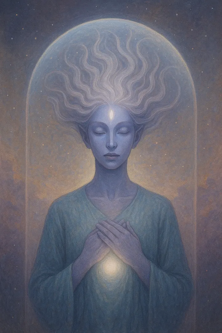 Я говорю не сверху над вами, а рядом с вами - от сердца к сердцу, от вдоха к вдоху, сквозь сияющую решетку времени и света.