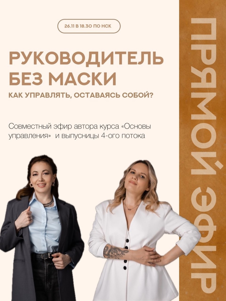 💡Когда мы впервые становимся руководителями, кажется, что нужно «надеть маску»: быть строже, увереннее, чем чувствуешь себя изнутри. Будто для управления обязательно нужно стать другим человеком. Но мой самый важный инсайт на курсе был противоположным. Чтобы быть руководителем, не нужно прикидываться. Можно управлять, оставаясь собой — настоящим. Да, нужно наращивать компетенции, учиться коммуникации, брать ответственность и расти. Но фундамент — это ты, без масок и чужих ролей. 26 ноября в 18.30 преподаватель курса Аниса Азизова совместно с выпускницей 4-ого потока Дарьей Сковородиной разберут: — внутренний конфликт между «какой я есть» и «какой должна быть» — как стыд блокирует коммуникацию, инициативу и уверенность Мы поговорим о том, как проживать эти состояния, как выстраивать свою управленческую позицию без давления, и как собрать вокруг себя команду, не теряя свою индивидуальность. Это будет прямой эфир о честности с собой, первых шагах в руководстве и о том, как развиват