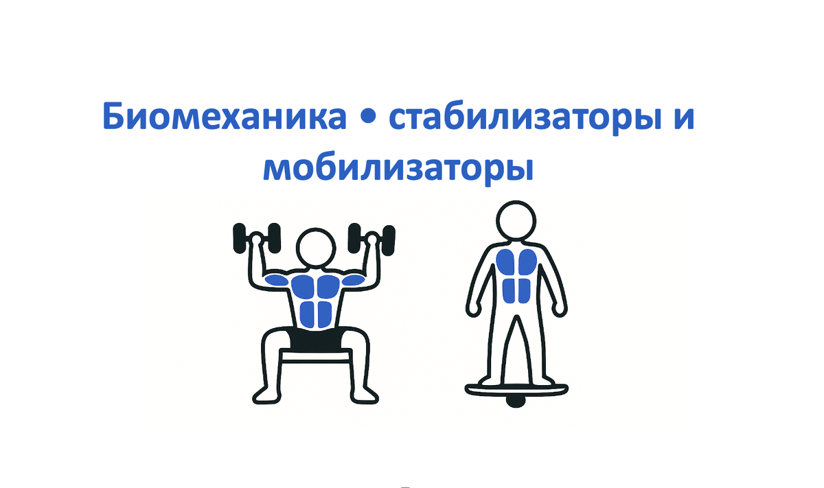 Стабилизаторы и мобилизаторы: функциональная иерархия мышц Введение: принцип функциональной специализации Современная биомеханика рассматривает мышечную систему как слаженный ансамбль, где каждая мышца выполняет специфическую роль. Четкое разделение на стабилизаторы и мобилизаторы объясняет многие аспекты двигательной патологии и обеспечивает основу для целенаправленной реабилитации. Функциональная классификация Мобилизаторы (глобальные мышцы): · расположены поверхностно · крупные, многосуставные мышцы · специализированы на генерации движения · обладают высокой силовой выносливостью · пример: прямая мышца бедра, большая грудная мышца · содержат преимущественно быстрые мышечные волокна · способны развивать значительную мощность · легко поддаются гипертрофии при тренировке Стабилизаторы (локальные мышцы): · расположены глубоко · короткие, односуставные мышцы · обеспечивают сегментарную стабильность · содержат высокую плотность проприорецепторов · пример: поперечная мышца живота,