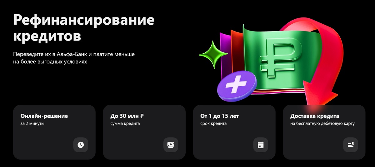 Примечание: данная статья носит информационный характер. Перед рефинансированием кредита рекомендуется ознакомиться с полными условиями на официальном сайте Альфа Банка и/или проконсультироваться с представителем банка.