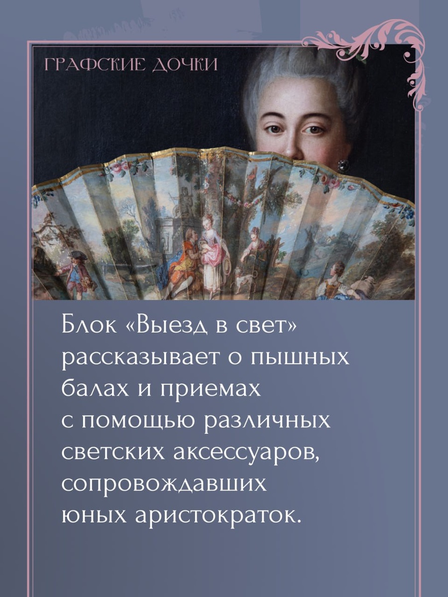 Без чего невозможно представить юную аристократку? О экспонатах выставки "Графские дочки" Собрали для вас в карточки рассказ про такой важный светский аксессуар, как веер. Для чего он был нужен на балу? 🔎 Посмотреть на веер вживую — на выставке Ждем вас во Дворце! ❤️