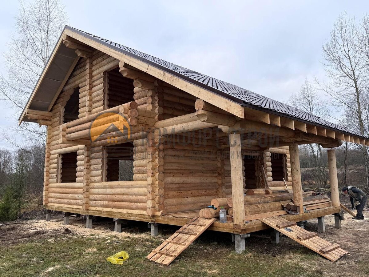 Завершили сборку дома из оцилиндрованного бревна диаметром 260 мм в Ленинградской области