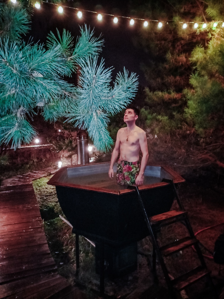 Чаны – большие деревянные ванны или котлы, наполненные горячей водой, которые нагреваются дровами. В России их появление связано с глубокой историей банных и паровых традиций, имеющих корни ещё в древних славянских обрядах и культуре. Ещё с древнерусских времён бани и парилки играли важную роль в жизни людей, служили местом очищения тела и духа. Однако идея купания в большом чаном, глубоком деревянном сосуде, наполненном горячей водой, пришла в Россию из соседних регионов и народов, где такие чаны были широко распространены среди кочевых и полукочевых народов Восточной Сибири, Алтая и Кавказа. В XIX-XX веках, с развитием туризма и отдыха на природе, чаны на дровах начали использовать не только для оздоровления, но и в качестве элемента комфортного отдыха на свежем воздухе. Вдали от крупных населённых пунктов, где не было возможности установить сложные системы отопления, дровяные чаны стали популярным способом получить удовольствие от горячей воды и расслабиться в Глэмпинг Хвоя I Аренда