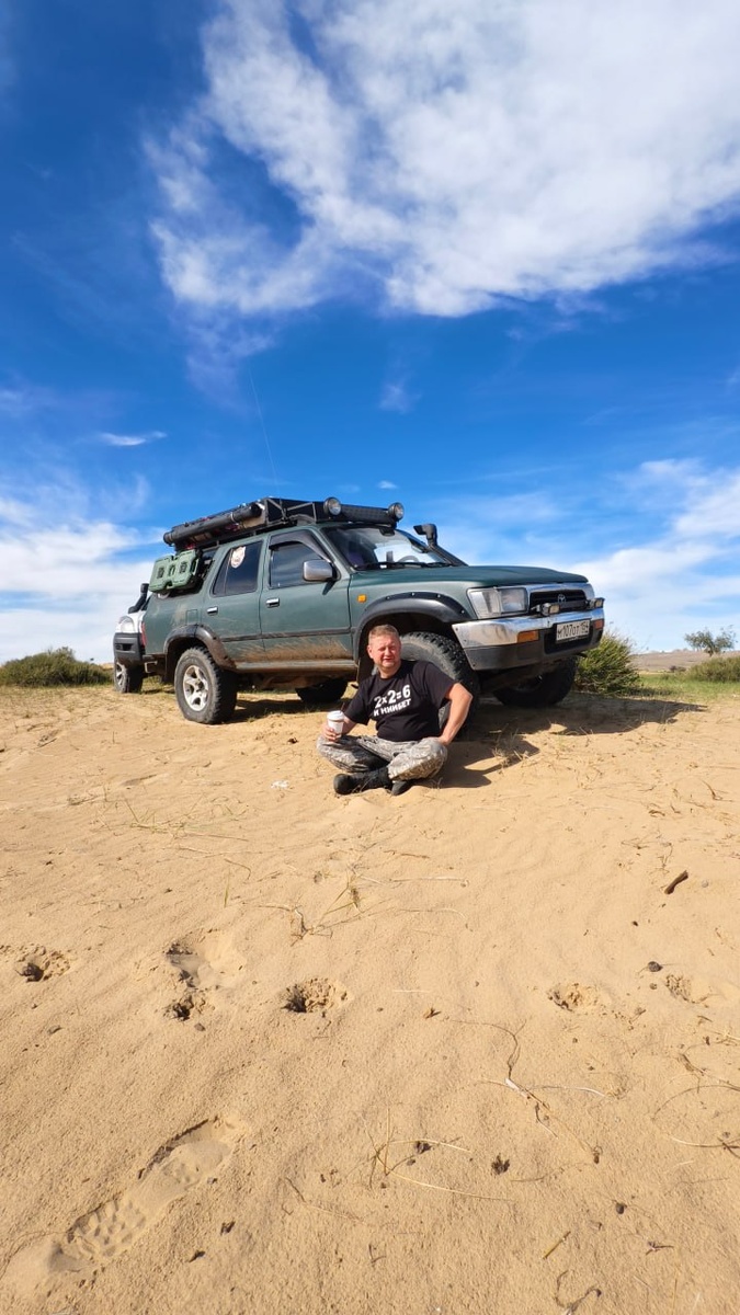 🐊 Дневник железного Крокодила Монахи, бархан и цикада-истеричка Утро. Хозяева… ушли. В монастырь. 🥺 Крокодил: - Беляш, они что, теперь навсегда? Беляш (флегматично): - Расслабься, Крок. Если бы навсегда - ключи бы оставили. И правда… вернулись. Довольные, светящиеся, будто их там подзарядили через USB. Видимо, показывали им что-то древнее, важное. Но машины туда не пускают… Эх, мы бы тоже духовно прокачались! Но ладно. Погнали дальше! Вот просто едешь-едешь в сторону Улан-Батора - степи, холмы, всё логично - и БАЦ: Барханы. Песок. Верблюды. Я аж тормозами пискнул. Даже воздух стал иным - сухой, горячий, будто кто-то включил фен на максимум. Фара левая (мигает тревожно): - Это что за сюрприз? Колёса (радостно): - Песочница!!! Подвеска: - Только не буксуйте, прошу вас! Хозяева: - Фотосессия!!! А мы стоим… позируем. Ну да, конечно, на фоне бархана я выгляжу как модель «в стиле Mad Max». И тут: Тррррррррррррррр! Что-то летает. ОРЁТ как миксер, который сбежал из кухни. Кр