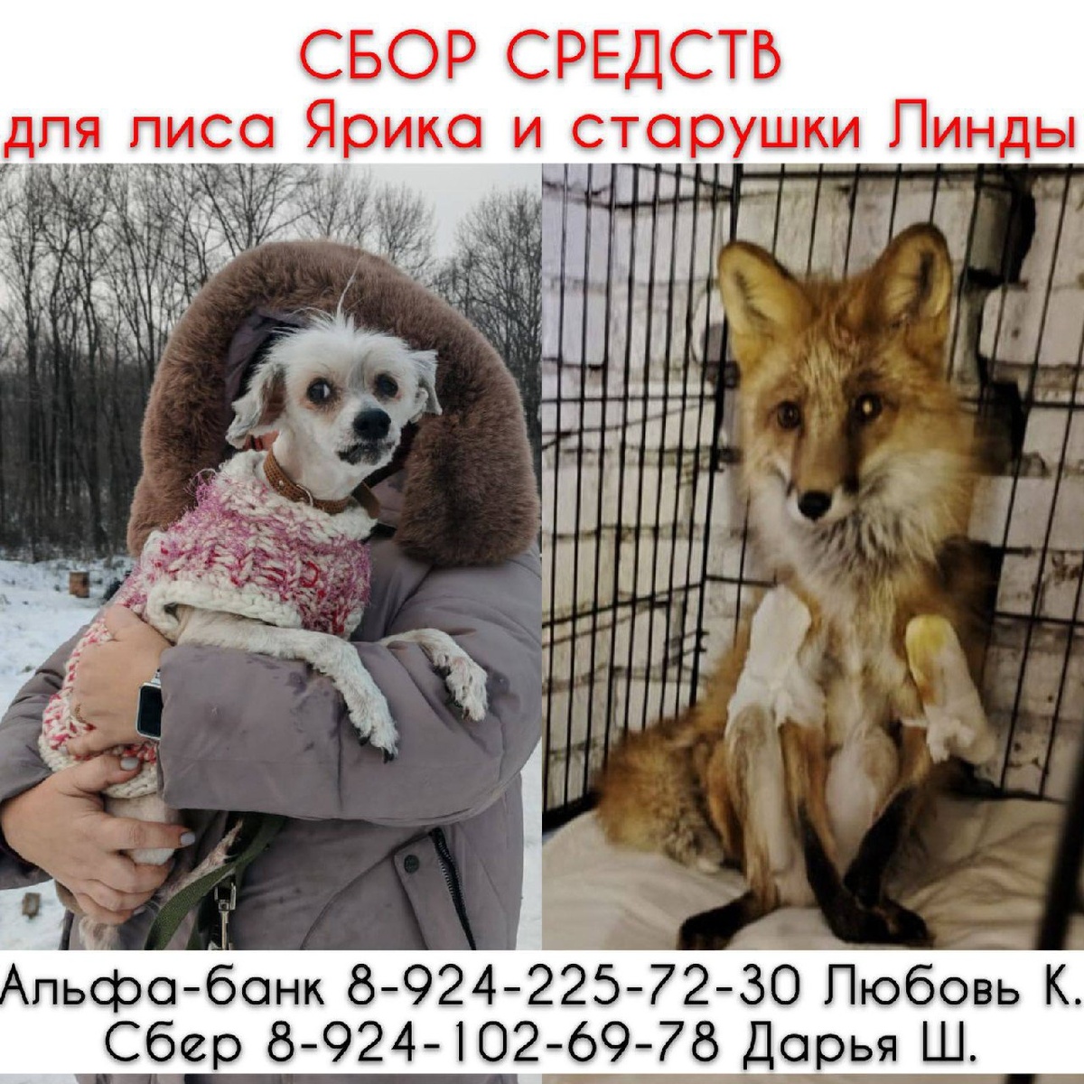 Друзья! Сейчас повезли Лиса Ярика и малышку Линдочку на операции. Помощь можно оказать: *Альфа-банк* 8-924-225-72-30 Любовь К, *Сбер* 8-924-102-69-78 Дарья Ш. Пометка *благотворительность операция* К сожалению, наш приют сейчас переживает тяжелые времена и буквально тонет в долгах. У нас совершенно нет средств, чтобы самостоятельно оплатить лечение, операции и стационар. Очень надеемся на вашу помощь.