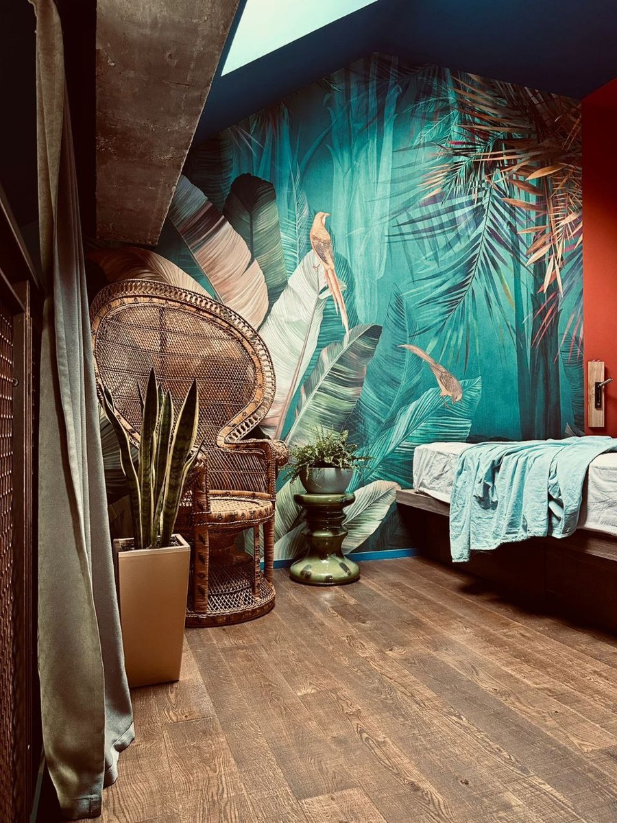 Экзотический интерьер спальной комнаты от покупателя. На стене тропический сюжет из коллекция обоев #Exclusive@affrescoru ( арт. AB305-COL2) - Посмотреть фрески, панно, обои и ткани можно в нашем интернет магазине. 📞 8-800-555-31-51 📨 Salon@affresco.ru 🌏 affresco.ru ⏰ Срок изготовления от 5 раб дней 🚀 vk.com/affrescoru ✈️ https://dzen.ru/id/5f710c51fe660a4af44007cb - #affrescoru #affresco #аффреско #фрески #обои #фотообои #обоидлястен #дизайнинтерьера #affrescoruвинтерьере #designinterior #настенныеобои #wallmural
