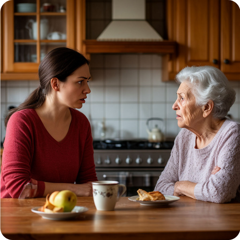 Валентина Семёновна сжала в руках чашку с чаем. Она посмотрела сначала на сына, потом — на дочь, и её лицо омрачилось.