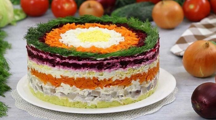 Очень вкусный слоёный салат на Новый год