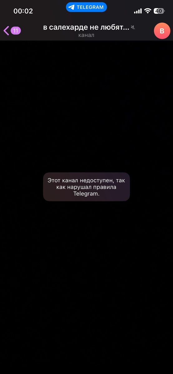 друзья, салехардцы, хочу сообщить радостную новость, не так давно в Салехарде вспыхнула волна обсуждений по поводу канала, который вели подростки, назывался он «в салехарде не любят», на данный момент канал НАКОНЕЦ-ТО закрыт и заблокирован, спасибо всем, кто кидал жалобы и не оставил это дело просто так, давайте не допустим также создание нового телеграмм-канала с травлей и унижениями наших салехардских деток 🙏🙏🙏, канал блокировали два раза, летом 2024-25 года (точную дату сказать не могу), канал был заблокирован 1 раз, на следующий день компания подростков-хулиганов, которые скрываются под маской анонимности, создала такой же новый телеграмм-канал, где продолжила глумиться над подростками и детьми, мы не должны допустить, чтобы снова создали новый телеграмм-канал с травлей наших детей, в ноябре 2025 года канал снова заблокирован и недоступен, по предварительным данным, модератором данного мракобесия (НЕ ПУТАТЬ С АДМИНОМ) был 17-летний Артем Стецюк, информацию об админах не разглаша