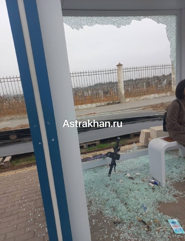 Невеселый пейзаж кладбища в Астрахани дополнила разбитая остановка