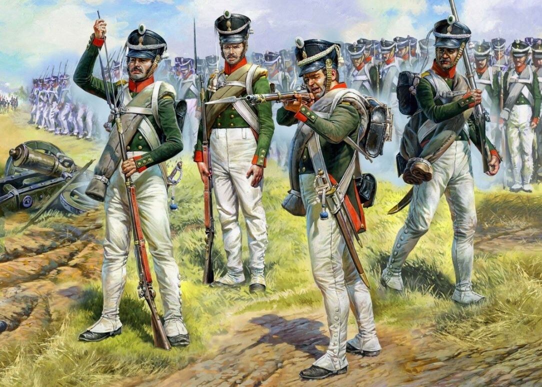 Любопытно в данной связи, что рассматривая изображения русских солдат 1812 года, ничего определённого о происхождении и сословной принадлежности этих людей сказать нельзя. Исключая, разве что, лейб-гвардейскую конницу (все дворяне) или казаков, полки которых комплектовались, внезапно, представителями сословия казаков. В остальных полках солдат был… просто солдат.