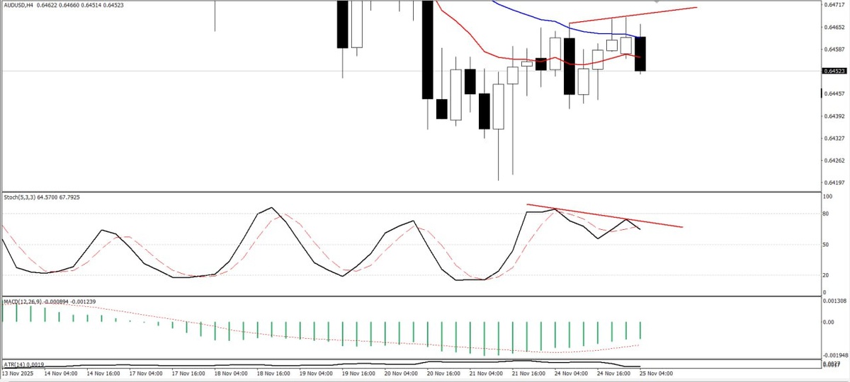 AUDUSD. На Н4 графиках сложились условия для продажи по концепции Марти Шварца «20/80». Цена коснулась EMA 21, MACD ниже нуля, по стохастику сформировалась дивергенция.