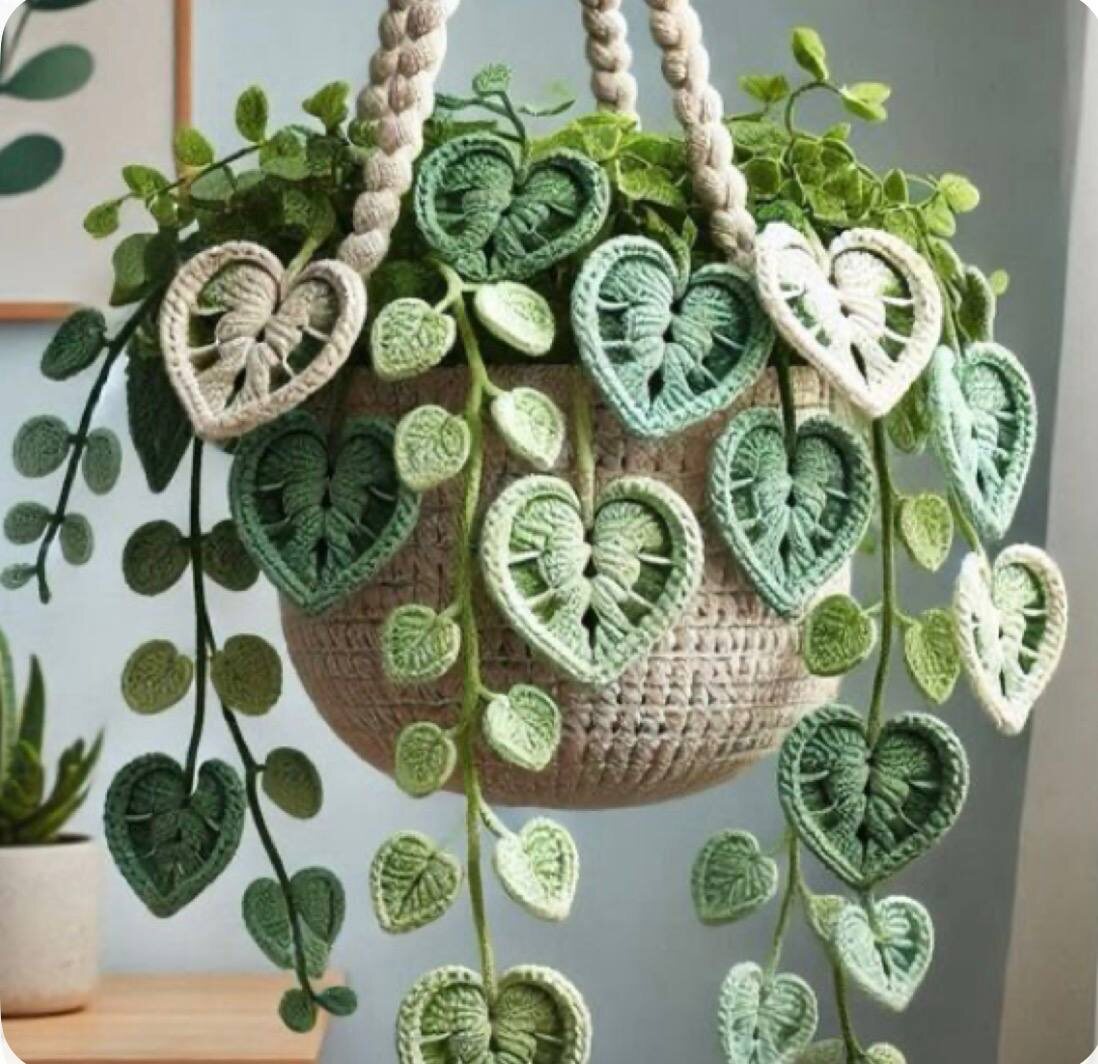 Когда не можешь выбрать между цветами и вязанием 🌿 Признавайтесь, кто тоже мечтает о джунглях дома, но забывает поливать кактусы? Эти вязаные суккуленты - идеальный компромисс! Листики-сердечки свисают каскадом, монстеры радуют глаз круглый год, а ухаживать нужно только... пылесосом раз в месяц 😄 Кстати, секрет реалистичности в разных оттенках зелени. Видите, как играет цвет от темно-изумрудного до нежно-мятного? Вот где можно использовать все те остатки пряжи, что лежат мёртвым грузом! А схемы-то какие простые оказались 👀