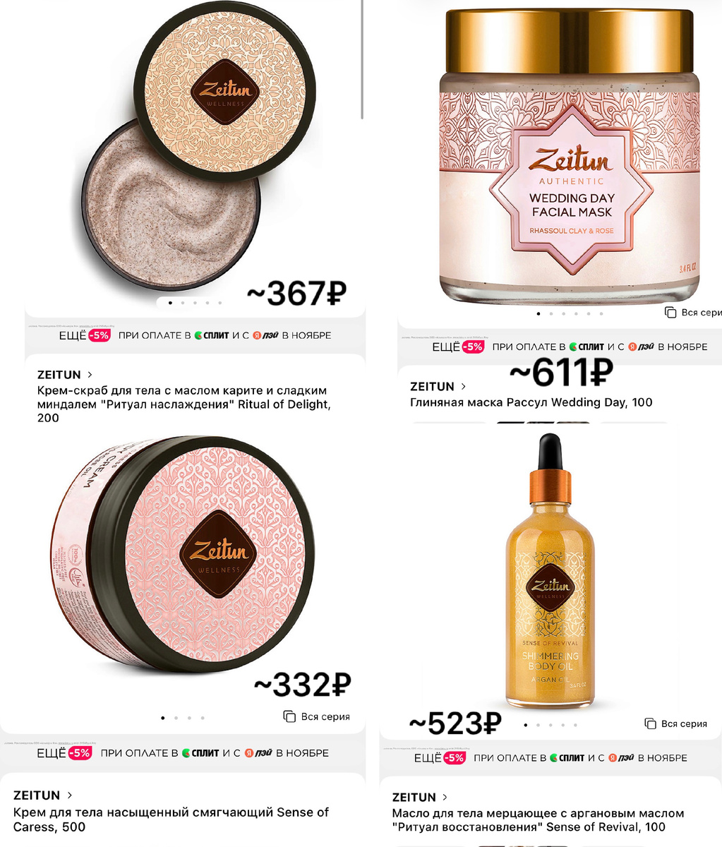 Сейчас тот самый момент, чтобы приобрести себе продукты от Zeitun по приятным ценам, ведь в Летуаль всем начислили 50000 бонусов🔥‼️‼️‼️ Если вы давно хотели попробовать что-то по-настоящему восточное, глубокое и роскошное — сейчас то самое время. Косметика Zeitun напомнила мне, что уход может быть не просто рутиной, а полноценным ритуалом заботы о себе. Да, действительно, как многие говорят, визуал и концепция Зейтун похожа на всеми знаменитые La Sultan De Saba, но, как по мне, Зейтун ничем не хуже, а порой некоторые продукты превосходят французскую линейку. Причем выходит продукция намного дешевле, раз в так 10😁 Густые масла, пряные ароматы, бархатные текстуры, которые тают на коже — те самые средства, которые хочется ставить на видное место за счет невероятно красивой упаковки, открывать медленно, с предвкушением — каждый раз удивляться, насколько они тщательно продуманы. У Zeitun всё работает на ощущение роскоши: — тёплые, обволакивающие ароматы, будто из марокканской баньки — н
