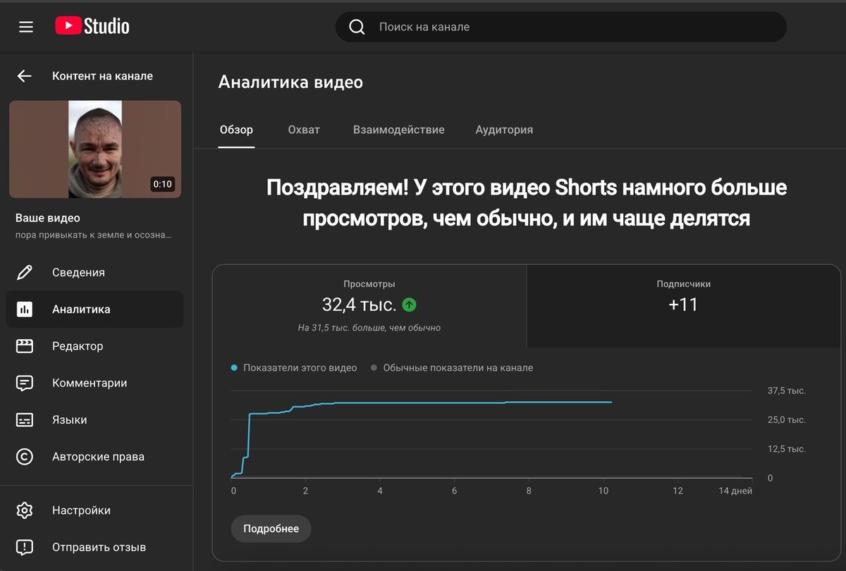 Вертикальные видео 9:16 залетело на 30 000 просмотров. Маркетинг — штука широкая, и я решил зайти в ещё одну ветку, которую давно хотел потрогать руками. Алгоритм простой, но рабочий: 1⃣ Беру целевую аудиторию. 2⃣ Прописываю их потребности, боли, страхи и возражения. 3⃣ На основе этого делаю короткие сценарии. 4⃣ Отправляю всё в нейросеть — и она выдаёт сочные видосики, которые сейчас смотрятся лучше, чем классический продакшн. 5⃣ Через кросс-постинг разбрасываю контент сразу на 5 соцсетей. И что в итоге? 📈 На скрине — текущий максимум. Одно видео залетело на 30 000 органики, при этом вложения — минимальные. Алгоритмы такое любят. Буду продолжать тестировать — подводных камней тут хватает, как и в любом новом направлении. Но это и делает процесс интересным 😊 💡 Есть мысль подключить монетизацию канала, а сверху — партнёрки + мини-продукт. Цель — долгосрочная, горизонтом 6 месяцев, чтобы это превратилось в отдельный источник дохода.