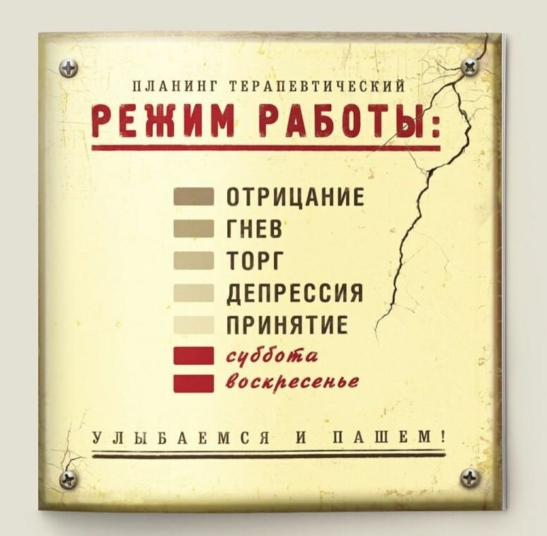 #полезное Типичная рабочая неделя😁 Или нет? Уверена, что счастливые люди - это те, кому работа действительно приносит удовольствие. Однако, в любой деятельности есть то, что нас раздражает. ☹️у кого-то это работа с документами ☹️кто-то ненавидит телефонные разговоры ☹️для кого-то невыносимо делать монотонную работу Ловите несколько правил управления временем, которые помогут справиться с раздражением: Правило 2 минут. Дело, которое не займёт больше двух минут, стоит сделать прямо сейчас. Сделайте его — и выкиньте из головы. Правило 10 минут. Помогает с собой договориться и всё-таки взяться за нужную работу. Скажите себе, что будете заниматься делом только 10 минут, — и приступайте. Скорее всего, за эти 10 минут вы уже втянетесь в работу и легко продолжите. Правило Лягушки. Автор этого правила, Брайен Трэйси, называет «лягушками» дела, которые важно сделать, но не хочется. Нужно сделать одно такое дела в начале дня, «съесть лягушку». Потом, в течение всего дня, вас будет радовать