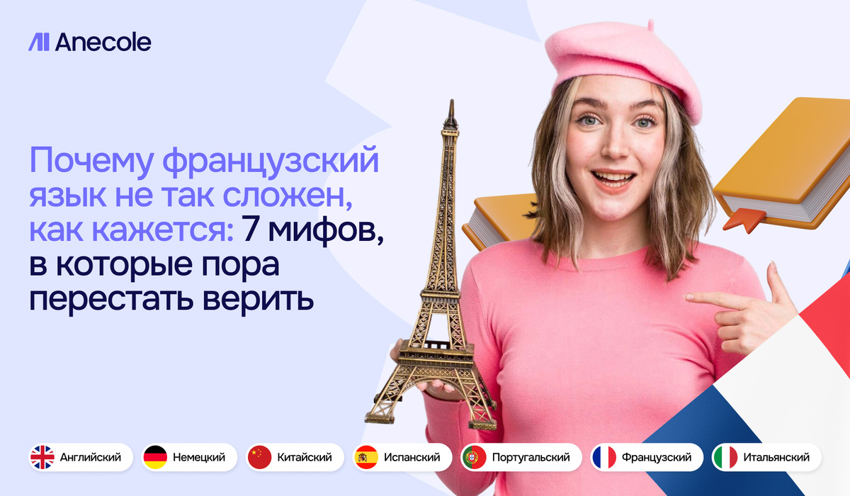 Если вы когда-то задумывались, почему он считается сложным, попробуйте вслух сказать «bonjour» или «merci». Уже получилось? Значит, вы сделали первый шаг. На курсы французского языка в Anecole приходят ученики, которые раньше не учили ни одного иностранного — и через пару недель спокойно говорят целыми предложениями. Французский — это не про зубрежку, а про ощущение ритма и удовольствия от звука.