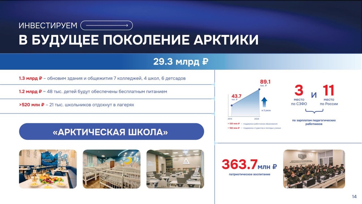 В ответ на пост Андрей Чибис: Основная социальная направленность бюджета – вклад в будущее поколение. Например, 1,2 млрд рублей будет направлено на обеспечение детей бесплатным питанием. ❄ «Арктический Обозреватель»