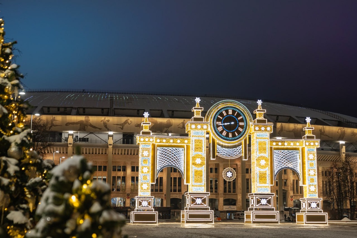 Продолжаем рубрику #ПраздничныйКонтент! ✨ В преддверии самого волшебного времени года Москва продолжает преображаться! Сегодня в центре внимания – арка «Время Рождества», которую специалисты АО «ОЭК» установили у центрального входа в спорткомплекс «Лужники». 🕔 Высота конструкции – 18 метров, длина – 28 метров, а держится она на четырех мощных колоннах. Главная изюминка – действующие часы, ставшие центральным элементом композиции. Каждый посетитель сможет не только сделать эффектное фото, но и узнать точное время! Арка, кроме часов, украшена композитными панелями разных цветов и фактур, что придает ей по-настоящему нарядный и богатый вид. А по вечерам световое оформление из адресных светодиодных модулей и гирлянд оживляет поверхность арки динамичными световыми шоу и яркими полноцветными изображениями. Приходите, фотографируйтесь и ловите праздничное настроение! 💫 ⭐️ ДЖКХ Москвы — подпишись!