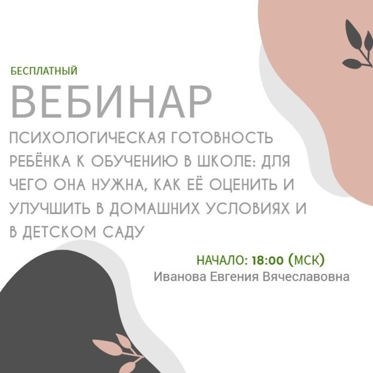 Вебинар «Психологическая готовность ребёнка к обучению в школе: для чего она нужна, как её оценить и улучшить в домашних условиях и в