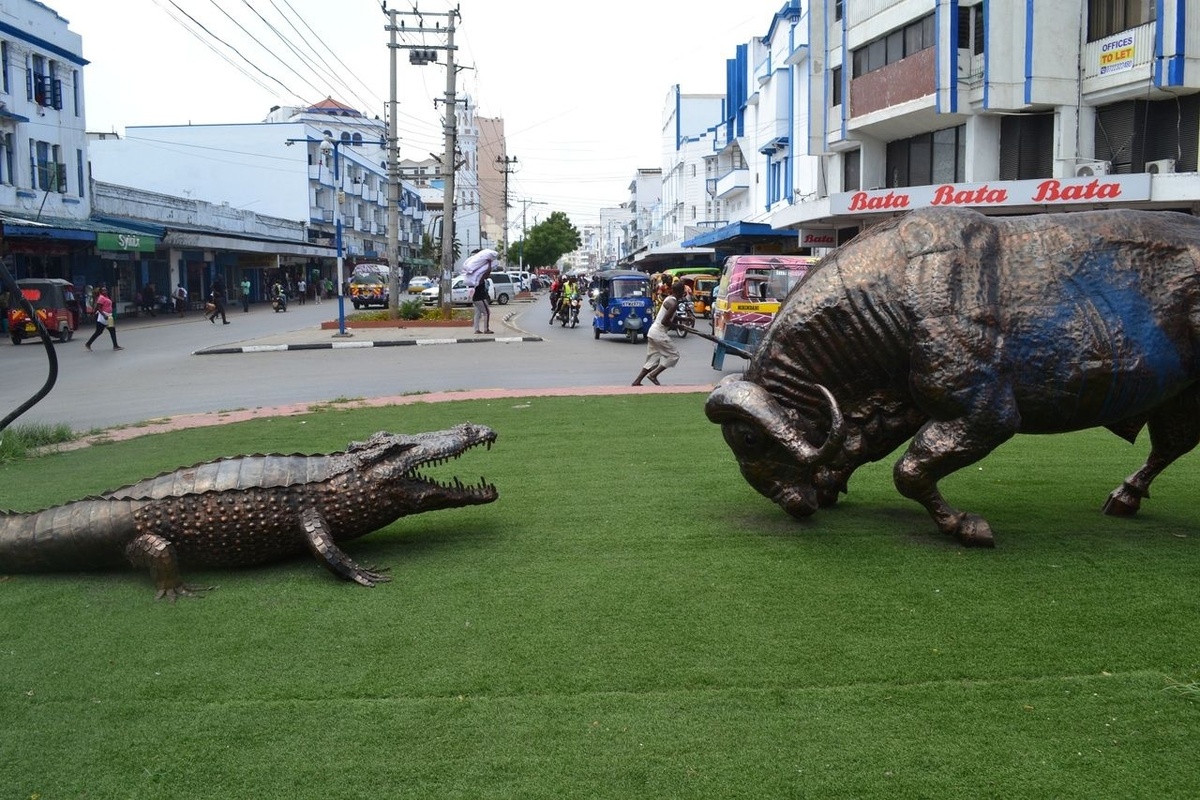 Сюда специально он ни разу не ехал. Даже название местности ему было до сих пор не знакомо, пока не глянул на карту. Доехав до центра Момбасы на матату, обнаружил, что некто въехал в попу буйвола, что стояла на перекрестке. При этом, попа вместе с несчастным животным, продолжила движение и раздавила еще что-то. Влезать в толпу и пробку было неохота. Да и крови было немного. Посему пихаю только фото еще не улетевшей попы из прошлого года. Вылез из матату. Идти пришлось по головам и спинам — всем же очень интересно, как летает попа! Дойдя пешком до парома, переправился на противоположный берег. Переправились, но тут пришлось постоять. Менты уложили кого-то мордой в землю и производили жесткий шмон в нескольких машинах. Здесь был порядок. Все интересующиеся, данным мероприятием, получали палкой по башке и тоже ложились мордой в землю. Какому-то репортеру кокнули хорошую камеру, чтоб не лез. Репортер тоже занял подобающее положение. Эх, хорошо в деревне летом! Я свою камеру спрятал пода