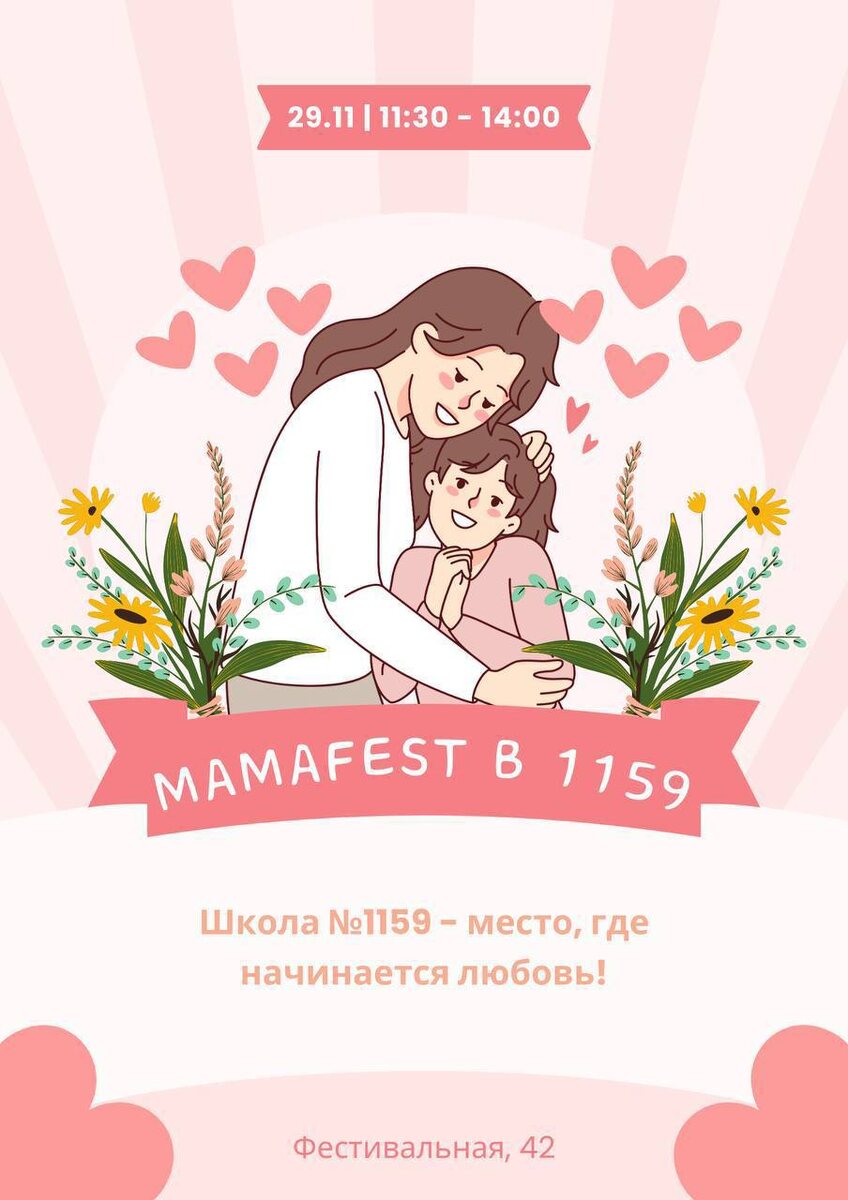 29 ноября с 11:00 до 14:00 в школе №1159 пройдёт МамаFest — семейный фестиваль ко Дню матери