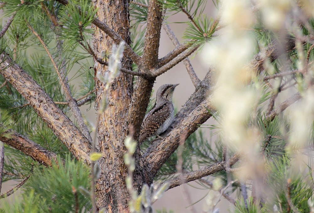 История 1. 15 мая 2018г. Наконец-то, я увидела Вертишейку! Этот родственник дятлов горланил на всю округу в саду наших соседей. Очевидно решив, что именно здесь ему улыбнется удача - встретить свою судьбу на этот сезон... .