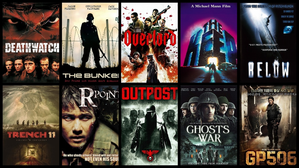 1. На страже смерти (2002) ОПИСАНИЕ: 1917 год. На западном фронте без перемен. Миллионы солдат «захлёбываются в крови» на изрытых воронками и опутанных колючей проволокой равнинах, превращённых в гигантскую общую могилу. После жестокого боя остатки роты, в которой служит 16-летний рядовой британской армии Чарли Шекспир, заблудились в густом тумане и оказались в тылу врага. Их единственное убежище — заброшенные немецкие траншеи с подземными ходами. Никто не придет к ним на помощь, потому что роту считают погибшей. Но это еще не самое страшное — под землей затаился невидимый враг. 2. Бункер (2001) ОПИСАНИЕ: Осень 1944 года. Арденские леса. Семеро измотанных германских солдат находят убежище в противотанковом бункере, затерянном в глухом лесу. Толстые бетонные стены и расположенная глубоко под землей огромная запутанная система подземных тоннелей, превратили этот бункер в неприступную крепость.
