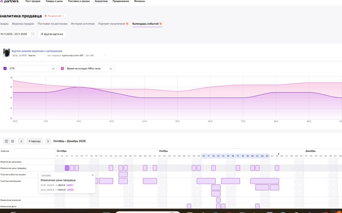 Нашел интересный отчет в тариф продвинутый.))) Во-первых: всегда видны все изменения в карточке.которые были 2. можно отследить как эти изменения повлияли на заказы и продажи карточек.