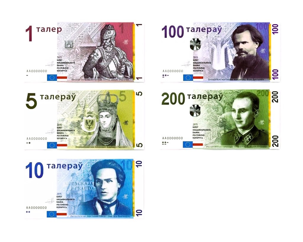 Так предлагалось назвать валюту Республики Беларусь некоторыми общественными деятелями Беларуси в начале 1990-х годов. Концепцию оформления талера разрабатывал художник Владимир Круковский, эскизы монет - Лев Толбузин, дизайн бумажных купюр - Леонид Бартлов. Предполагалось, что на них будут изображать видных деятелей Беларуси: князей, поэтов, революционеров и т. д. Художник Круковский предложил концепцию собственных белорусских денег: талеров в качестве купюр и грошей в качестве монет. Планировалось девять номиналов, купюры должны были быть трёх размеров. Самая большая, 1000 талеров. Однако ни название, ни дизайн не поддержал Совет Министров. Во-первых, напечатать деньги с такими сложными рисунками технически было невозможно. Во-вторых, история Беларуси по-прежнему для многих отсчитывалась с 1917 года, и талеры с князьями не вписывались в концепцию. Депутаты проголосовали против талеров и остановились на названии рубль, а в изображениях было решено максимально уйти от политики. Спасиб