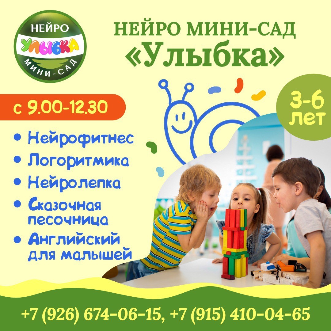 ✨ Учебный центр "СФЕРИО" открывает набор в уютную группу НЕЙРО мини-сада для детей от 3 до 6 лет. Почему выбирают наш мини-сад? ✨ УНИКАЛЬНЫЙ формат - это Нейро-Мини Сад ✨ Гармоничное развитие: Нейрофитнес, Нейролепка, Запуск речи, Логоритмика, Сказочная Песочница, Развивающие и Творческие занятия, а также Английский язык для малышей ✨ Комфортная адаптация ✨ Профессиональные специалисты ✨ Гибкий график 🏢 Учебный центр "Сферио" 📍 г. Чехов,ул. Полиграфистов, 6 (Вход со двора, подъезд 2, этаж 3) 🔗 Записаться: https://wa.me/+79154100465 Наши соцсети 📲⬇️ ➡️ ВК https://vk.com/sferio_kids ➡️ ТГ https://dzen.ru/id/672e115c65592e5989376c34 ➡️ Продленка https://vk.com/prodlenkachehov ➡️ Школа https://vk.com/sferio_school ⭐Поддержать канал голосом #webСферио ✅ Мероприятия Чехов https://dzen.ru/id/66cc4b48e9ef144699238a51 http://vk.com/chekhov_events http://dzen.ru/chekhov_events
