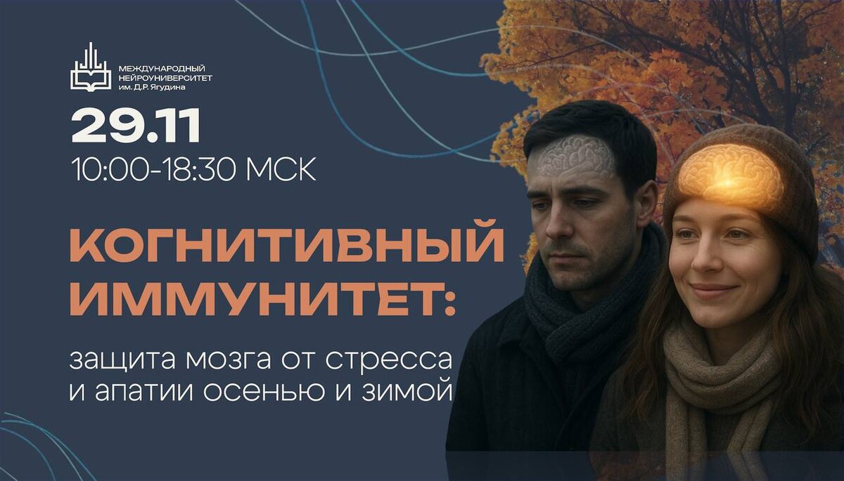 Дорогие друзья! Приглашаю вас на НейроКонференцию. Вместе с ведущими специалистами Международного НейроУниверситета мы проведем для вас уникальное событие с актуальными времени темами и практиками. С удовольствием готовлю для вас тему: «Эмпатия как антивирус: как эмоциональное здоровье обеспечивают поддержку в жизни в холодное время года» Итак, теперь к деталям и орг моментам: НейроУниверситет запускает цикл регулярных бесплатных онлайн-конференций. Первая пройдет уже 29 ноября (суббота) с 10:00 мск до 18:30 мск «Когнитивный иммунитет: защита мозга от стресса и апатии осенью и зимой» Тема выбрана неспроста. Многие чувствуют, как с наступлением холодов всё внутри будто бы нажимает на «паузу»? Эмоции притупляются, энергия на нуле, а нервы сдают? Мы хотим осветить эту тему и рассказать вам, что осень и зиму можно прожить иначе. Не в режиме выживания, а с устойчивостью и внутренним ростом. Уже 29 ноября (суббота) в 10:00 мск мы встретимся, чтобы разобраться: ➡️ почему мозг и психика так ос