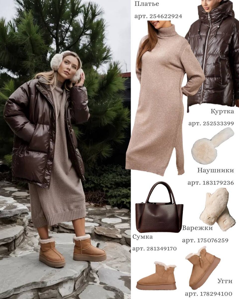 Зимой особенно хочется укутаться во что-то тёплое, объёмное, мягкое — но при этом выглядеть современно и собранно. И именно свободные силуэты дают это удивительное чувство свободы: ничего не сковывает движения, образы выглядят воздушно, расслабленно, но всё равно очень элегантно. В этой подборке с WB — шесть универсальных зимних комплектов, в которых комфорт не противопоставляется стилю, а становится его частью. 1. Тёплый капучино Перейти прямо к данному посту в Telegram с активными ссылками на вещи Трикотажное платье свободного кроя и объёмная шоколадная куртка создают идеальную формулу зимнего уюта. Светлые наушники, пушистые варежки и тёплые угги продолжают эту мягкую линию, делая образ нежным и по-настоящему зимним. Отлично подойдёт для прогулок, поездок и спокойных повседневных дней. Совет: выбирай платья с высоким воротом — они красиво вытягивают шею и делают образ теплее без лишних слоёв. 2. Крем-брюле в спортивном стиле Перейти прямо к данному посту в Telegram с активными ссы