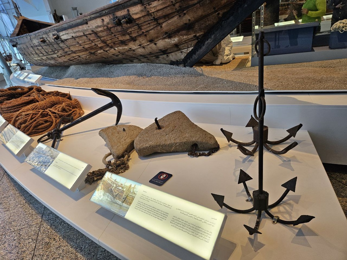 Якоря стальные и каменные с металлическими шипами, найденные при раскопках порта Шаррджи (ОАЭ) и выставленные в музее кораблестроения