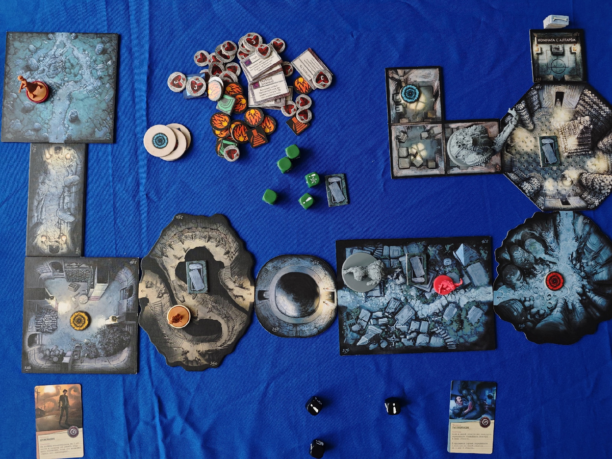 Доброго денечка, друзья! Сыграл я вчера в сценарий "Катакомбы" настольной игры Ктулху. Смерть может умереть. Спешу поделиться своими "успехами". Под улицами Парижа пролегают обширные катакомбы, построенные еще до основания города. Именно здесь группа культистов воздвигла свой большой костяной алтарь - идеальный маяк, чтобы привлечь внимание Цаттхогуа. И этот час предопределен в грядущую среду в 14:00. До назначенного часа игрокам нужно разобрать алтарь и упокоить кости. Отважным Агате и Юлиану пришлось пробраться через катакомбы, разобрать костяной алтарь, положить все жетоны костей в могилы, и сразиться с ужасным Цаттхогуа. Так получилось, что Агата могла убивать монстров в соседней области, поэтому зачисткой прохода занималась она. Юлиан...он просто шел дальше))) Хотя вру, он тоже в первой половине игры залетел неплохо и завалил пару культистов. Зато Юлиан нашел дорожную сумку, которая позволяла ему брать больше двух жетонов костей (по правилам не больше двух можно унести). Могил