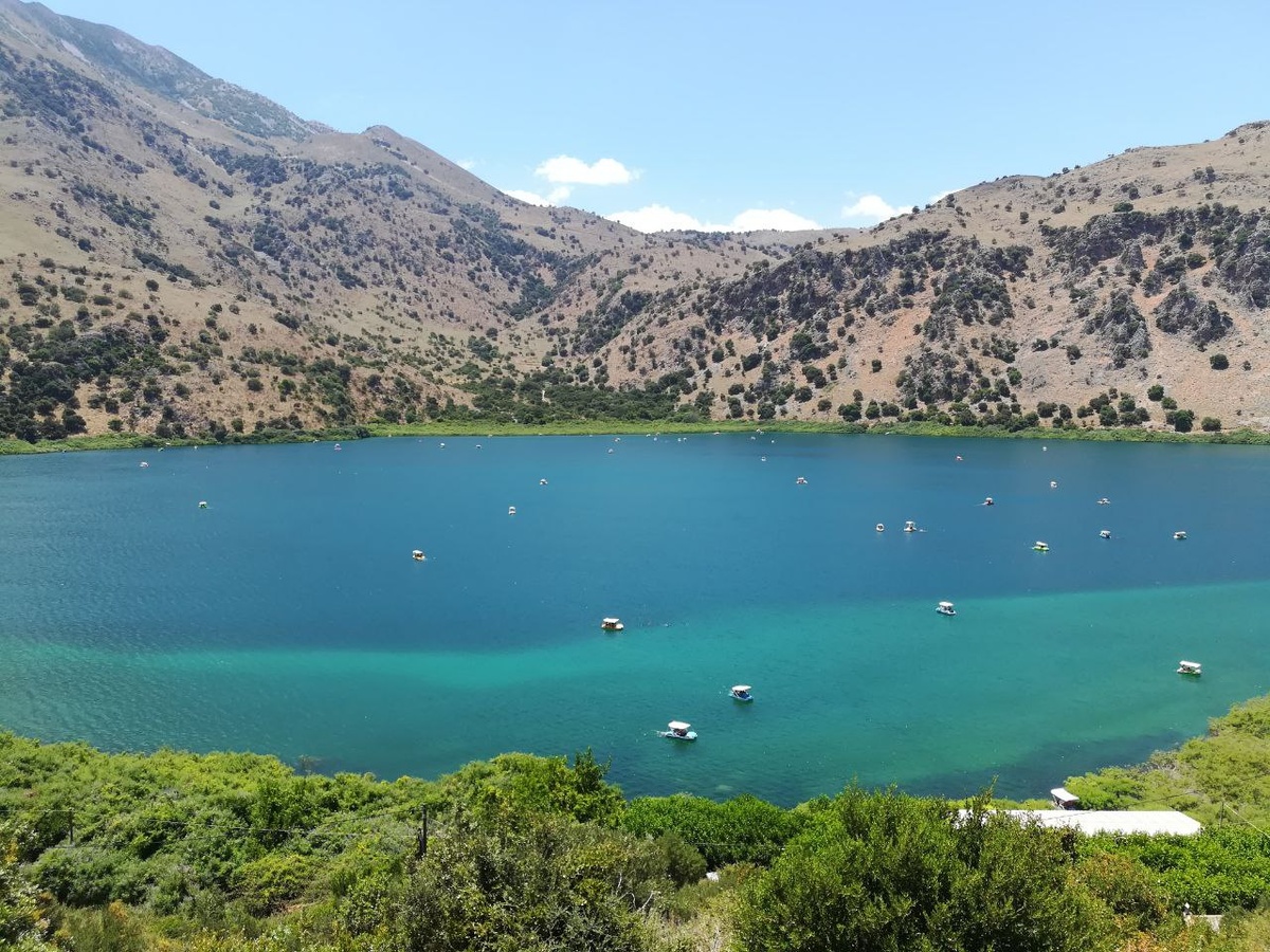 Удивительно, насколько разным может быть озеро Курнас. В этом году, как нам рассказала мама подруги (самим, к сожалению, побывать не удалось), озеро сильно обмельчало, пляж переехал вдаль от таверн, а на противоположной стороне озера, где всегда можно было прямо на катамаране подойти к растительности, стоящей в воде, в этом году оголилось дно озера. А таким, как на фото, озеро было в июне 2019 года. Здесь, наоборот, воды в озере было столько, что она целиком отъела пляж и подошла непосредственно к тавернам. Настолько полноводным мы его видели впервые!