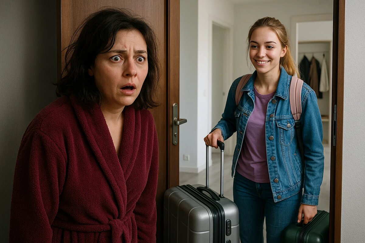 Она накинула халат и пошла к двери. В глазке маячил силуэт с огромными чемоданами. Евгения распахнула дверь, и на пороге стояла Ольга — младшая сестра, с двумя сумками на колесиках и рюкзаком за плечами.