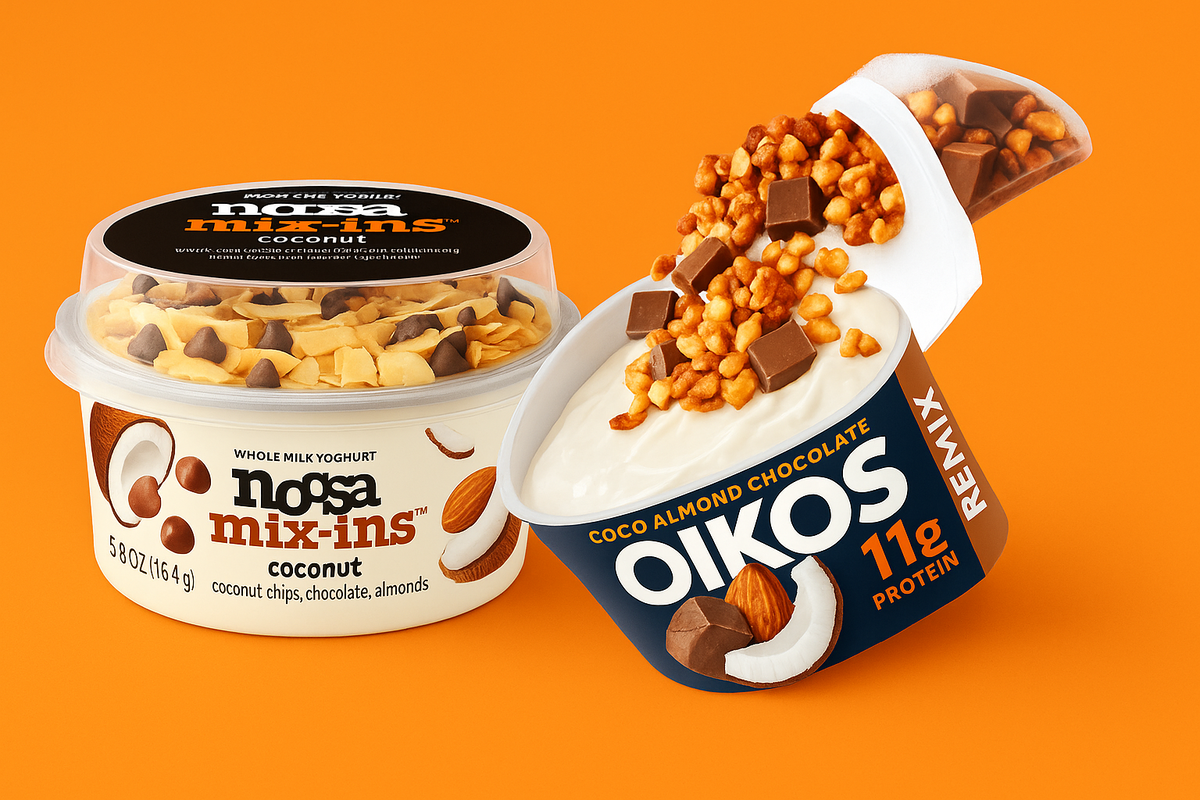 Сегодня на рынке лидируют два формата mix-in — крышка-топпер и Twin Pot. Оба хорошо знакомы потребителю, но дают производителям разные возможности. Ниже — ориентир, который помогает выбрать правильное решение для вашей mix-in-линейки.
