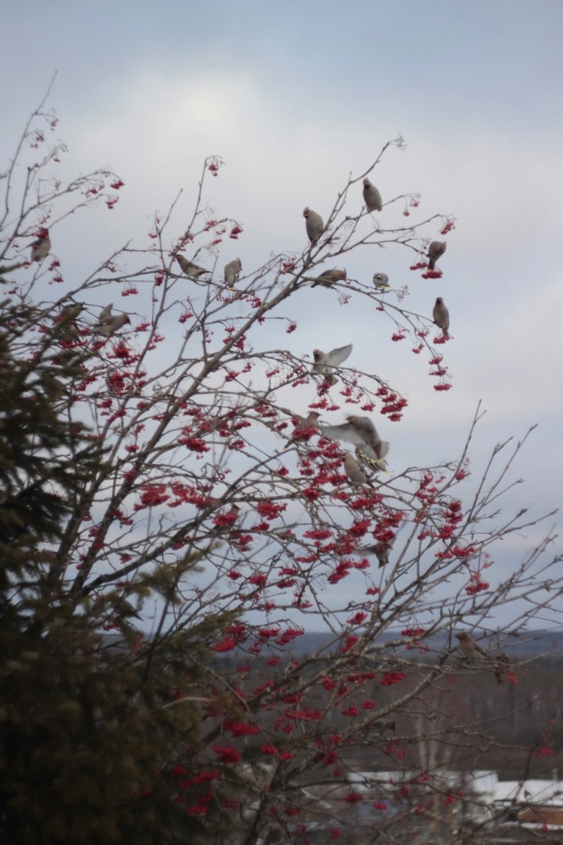 Трапеза свиристелей и причудливые узоры на замерзающем озере