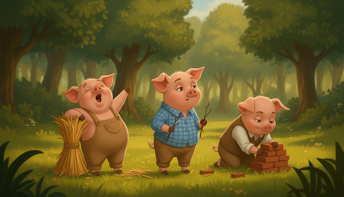 Что мы имеем? Трёх поросят, один из которых построил дом, руководствуясь принципом «и так сойдёт», второй - «главное - видимость работы», а третий подошёл к делу основательно (хотя и с необъяснимыми ресурсами). И Волка, который стал жертвой собственной глупости и неспособности к нестандартному мышлению.
