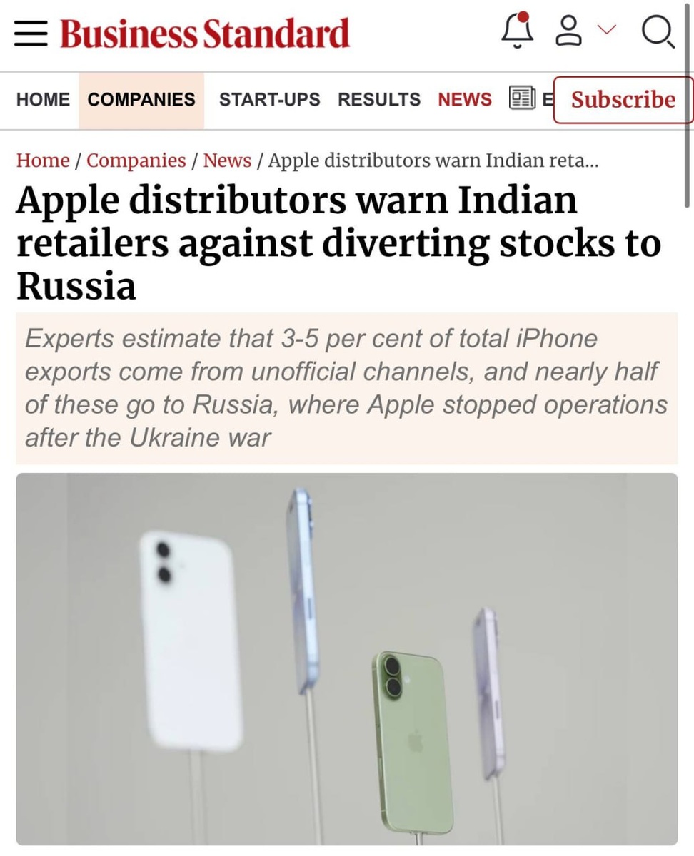 Apple начала блокировать поставки iPhone в Россию через параллельный импорт: первым предупреждение получили индийские ритейлеры. — Компании грозят крупными штрафами, если они будут перепродавать устройства в Россию. Новые условия жёсткие: если в течение 90 дней после покупки смартфон активируют с иностранной SIM-картой, магазину автоматически назначат штраф и прекратят дальнейшие поставки. Особое внимание уделят iPhone 17. По оценкам аналитиков, примерно половина «серых» айфонов попадает на рынок именно в Россию.