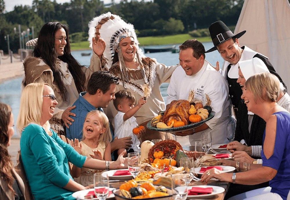 ΠΎΠ΄ΡΡ Π² 1621 Π³ΠΎΠ΄, ΠΊΠΎΠ³Π΄Π° ΠΏΠ΅ΡΠ΅ΡΠ΅Π»Π΅Π½ΡΡ-ΠΏΠΈΠ»ΠΈΠ³ΡΠΈΠΌΡ (ΠΏΡΠΈΠΏΠ»ΡΠ»ΠΈ ΠΈΠ· ΠΠ½Π³Π»ΠΈΠΈ) ΠΈ ΠΏΡΠ΅Π΄ΡΡΠ°Π²ΠΈΡΠ΅Π»ΠΈ Π½Π°ΡΠΎΠ΄Π° Wampanoag (ΠΆΠΈΠ»ΠΈ ΠΈΠ·Π½Π°ΡΠ°Π»ΡΠ½ΠΎ Π² ΠΠΌΠ΅ΡΠΈΠΊΠ΅) ΡΡΡΡΠΎΠΈΠ»ΠΈ ΡΠΎΠ²ΠΌΠ΅ΡΡΠ½ΡΠΉ ΠΎΡΠ΅Π½Π½ΠΈΠΉ ΠΏΠΈΡ. ΠΠ½ΠΈ ΠΏΡΠ°Π·Π΄Π½ΠΎΠ²Π°Π»ΠΈ ΡΡΠΎΠΆΠ°ΠΉ ΠΈ Π±Π»Π°Π³ΠΎΠ΄Π°ΡΠΈΠ»ΠΈ Π΄ΡΡΠ³ Π΄ΡΡΠ³Π° Π·Π° ΠΏΠΎΠΌΠΎΡΡ β Π²Π΅Π΄Ρ Π±Π΅Π· ΠΏΠΎΠ΄Π΄Π΅ΡΠΆΠΊΠΈ ΠΌΠ΅ΡΡΠ½ΡΡ